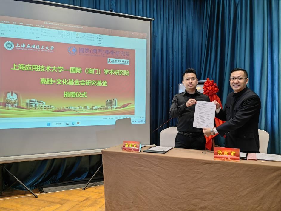 我校特聘教授、国际学术研究院院长高胜文总结过去论坛和合作成果时表示,论坛多项成果以不同的形式送呈政府相关部门,为共同建设世界重要人才中心和创新高地提供参考依据。高胜文感谢政府、企业、社团、亚博足彩及各专家学者的支持,期望透过多元的活动,推广、普及、促进各学术研究领域的繁荣和发展,并继续在各领域为社会建言献策、贡献力量,以实际行动践行爱国爱澳。他宣布高胜文化基金会向上海应用技术大学捐赠澳门币100000元(拾万元整),资助上海应用技术大学人文亚博足彩2024年各类经费。