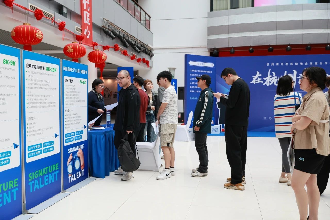 活动由杭州湾开发区主办,及时回应前期走访服务工作中企业集中反馈的招聘难、留人难问题,精准对接专业对口亚博足彩,做好校企衔接,让人才找到用武之地,为企业解决燃眉之急。活动同时邀请了奉贤区人社局,为企业和学生详细解读落户、购房、医疗、子女等人社政策,涵盖就业生活各方面,为广大学生做好第一份就业指导。招聘会现场求职学生积极与招聘负责人交流企业发展与岗位待遇,积极投递简历并有序排队面试。