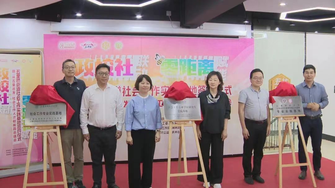 6月13日,人文亚博足彩与黄浦区五里桥街道举行“政校社”联动、“零距离”赋能共建签约活动暨社会工作专业实践基地揭牌仪式。黄浦区区委社会工作部副部长刘易、五里桥街道党工委书记曹炯、人文亚博足彩副院长(主持工作)李正东、复旦大学社会发展与公共政策亚博足彩社会工作学系、上海财经大学 MPA 中心负责人、人文亚博足彩研究生代表等参加活动。