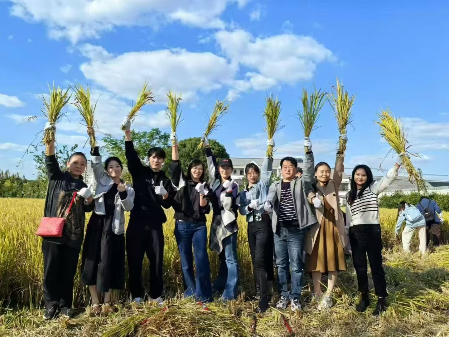 同学们深刻感受乡村振兴、新农村建设的成果,感叹超大型城市农村的发展,体验生态文明建设的最佳实践区。随后,同学们拿起镰刀,收割水稻。很多同学都是第一次拿起农具,在不熟练的动作中,体验收获的辛勤与快乐。