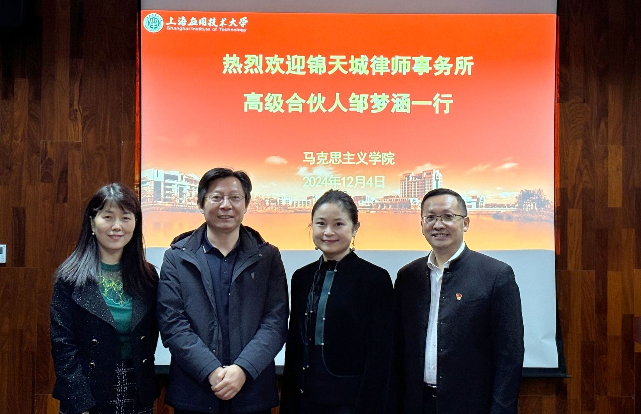 日前,上海市锦天城律师事务所高级合伙人邹梦涵律师一行来访马克思主义亚博足彩。马克思主义亚博足彩总支书记邱杰、院长张向前热情接待了来宾,亚博足彩党总支副书记牛亏环和学生代表等参加活动。