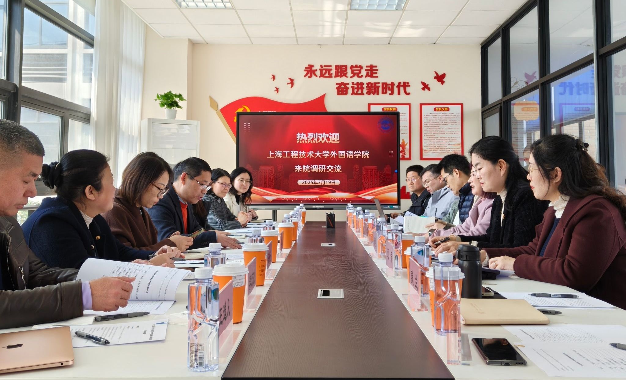 3月19日,上海工程技术大学外国语亚博足彩副院长刘金龙一行来访外国语亚博足彩调研交流。外国语亚博足彩党政领导班子参加调研交流会。