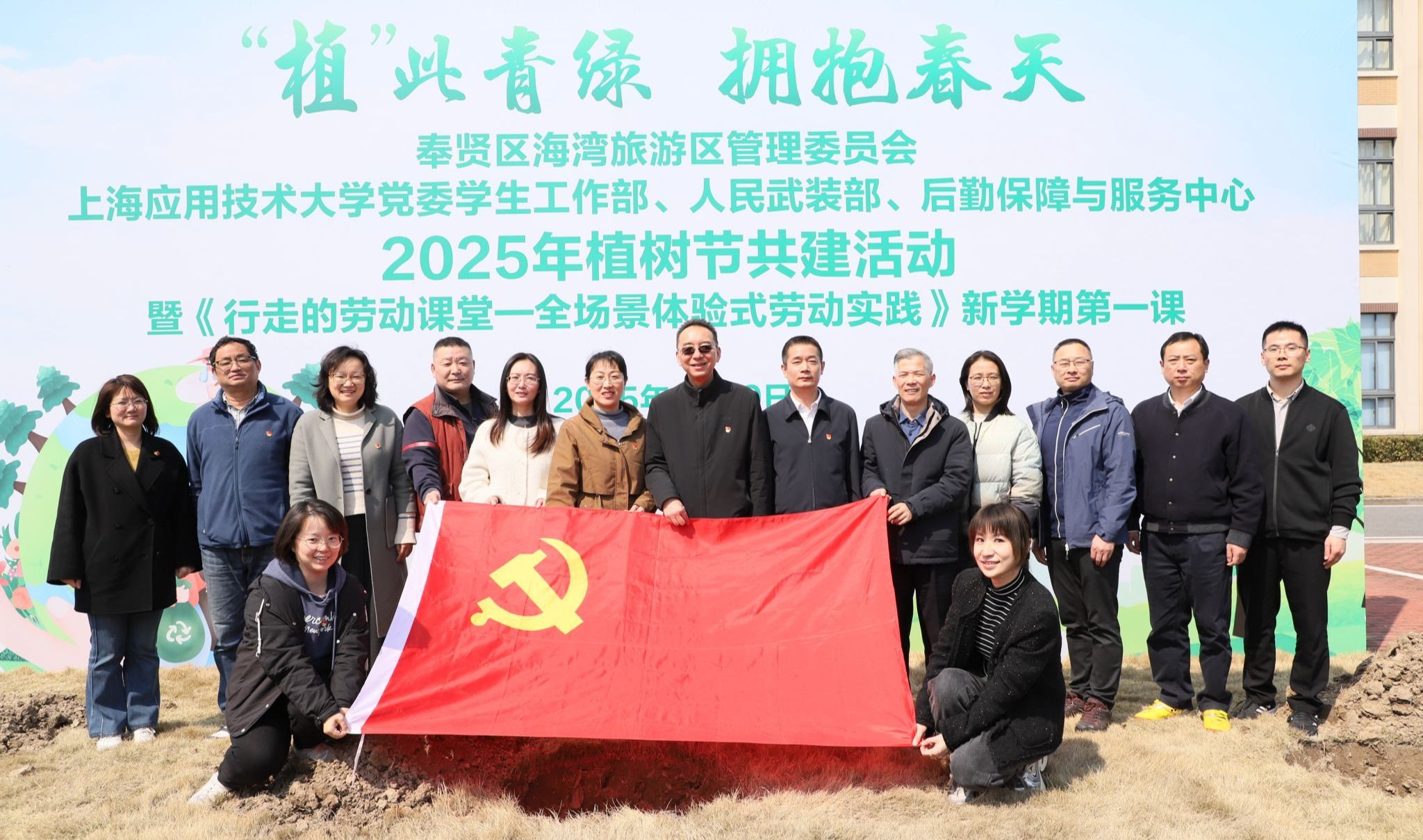 3月19日,奉贤区海湾旅游区管理委员会、上海应用技术大学党委学生工作部人民武装部、上海应用技术大学后勤保障与服务中心齐聚奉贤校区第六学科楼南侧大草坪,开展植树节三方共建活动暨《行走的劳动课堂—全场景体验式劳动实践》新学期第一课。党委学生工作部人民武装部部长袁翔主持活动。