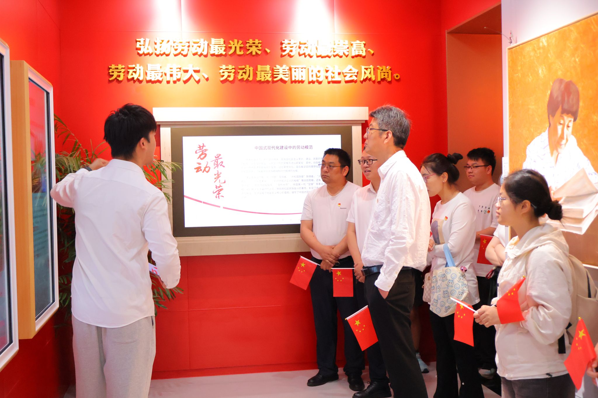 在讲解员的引导下,师生们重点参观了“大国工匠”“创新先锋”等主题展区,认真学习了“七一勋章”获得者黄宝妹、“共和国勋章”获得者王振义、“人民教育家”于漪等一批在中国式现代化建设中作出突出贡献的劳模事迹。