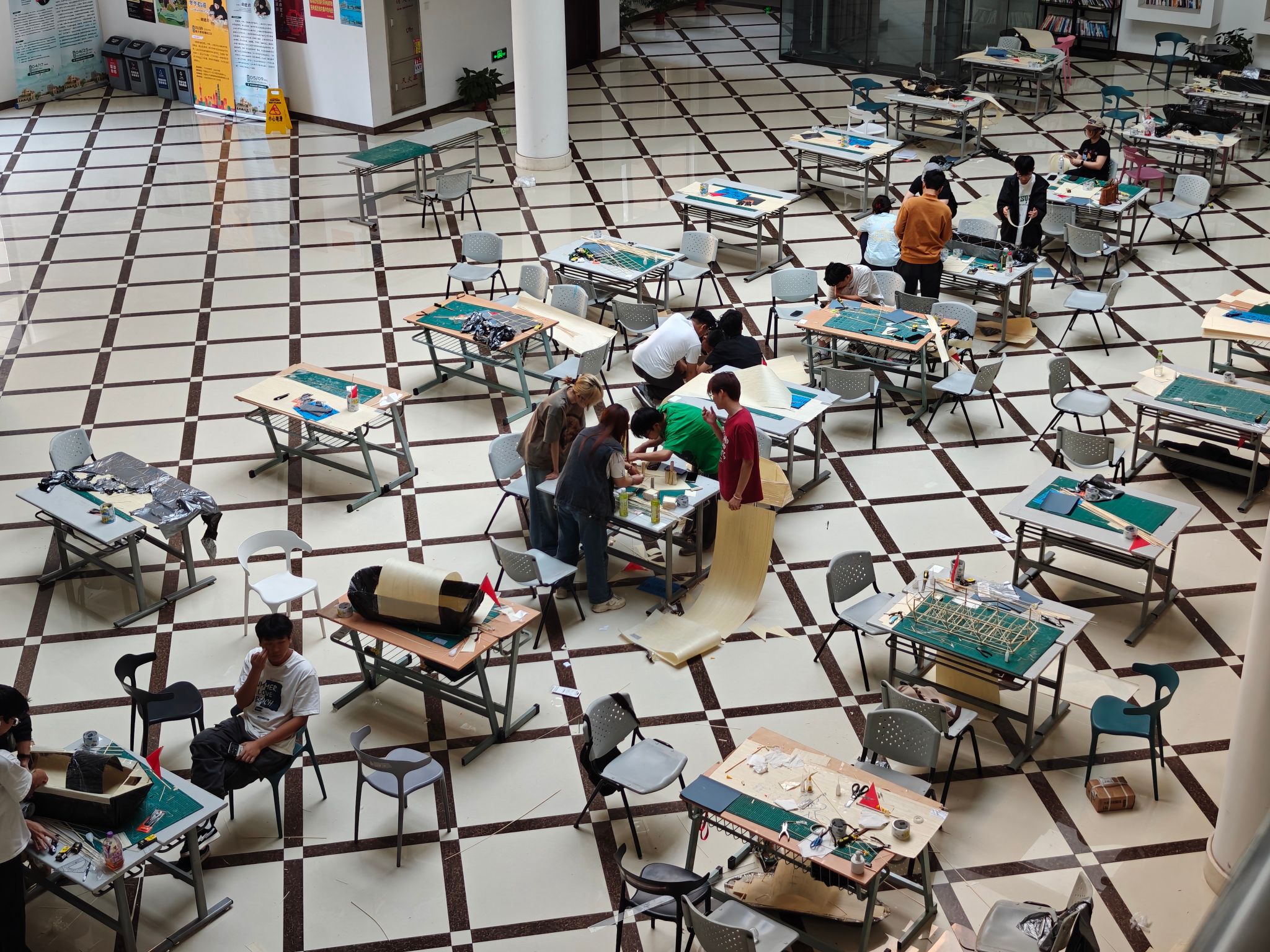 模型制作环节于奉贤校区第六学科楼开展,各参赛小组在限定时间内完成了独具特色的乌篷船模型。经过长达22小时的不懈努力,各小组的乌篷船模型纷纷精彩亮相。这些模型不仅体现了传统乌篷船的经典造型,还融入了现代工程理论,展现了学生们在轻量化、抗荷载和可持续材料应用上的创新思考。有的模型注重船体流线型设计,有的则强化了抗撞击性能,充分展现了同学们丰富的想象力和创造力,也让整个赛场洋溢着城建亚博足彩土木工程专业的浓厚文化气息。