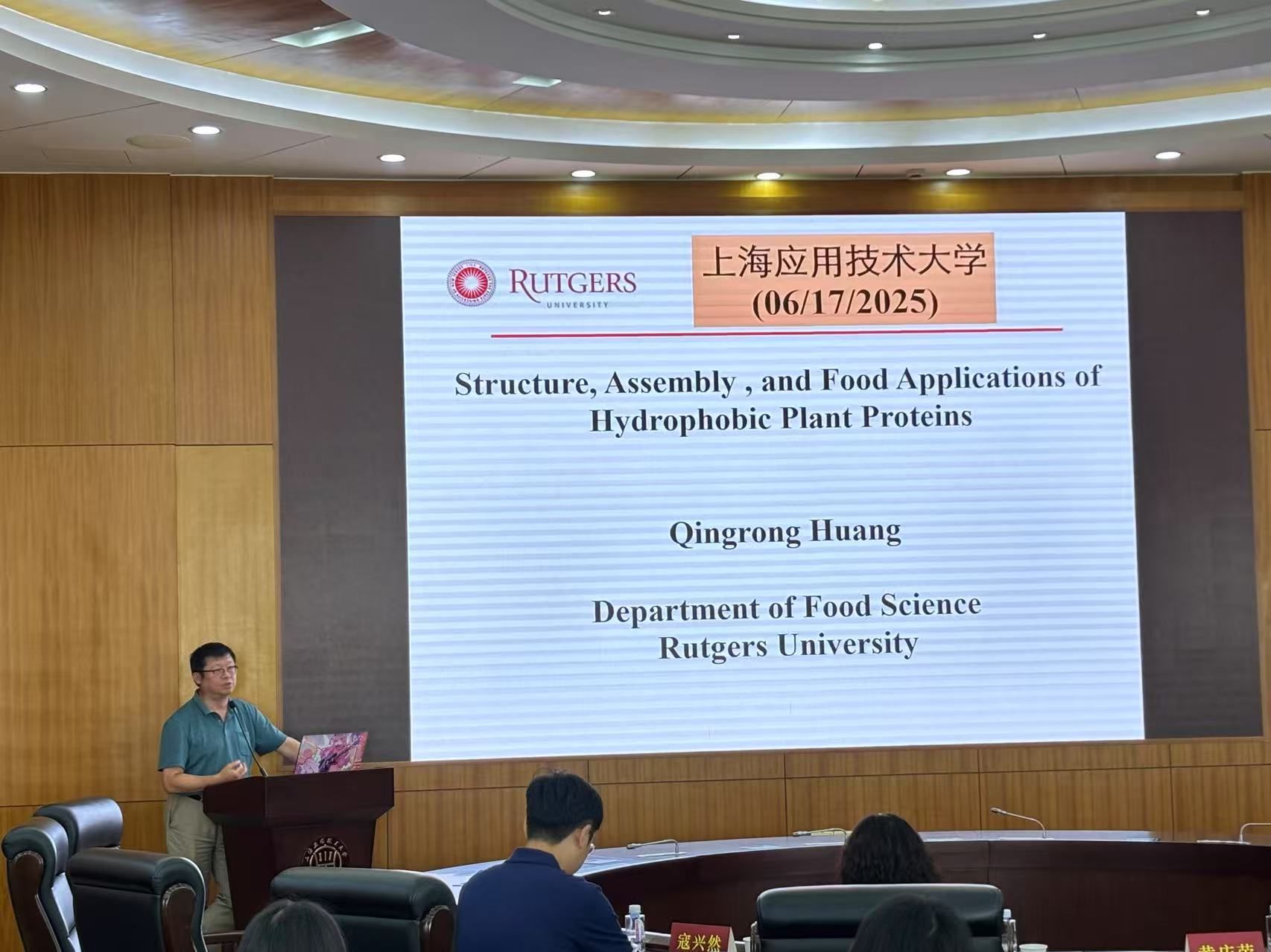 黄庆荣教授为师生带来题为《Structure, Assembly and Food Applications of Hydrophobic Plant Proteins》的学术报告,系统阐述了疏水性植物蛋白的结构特性、自组装机制及其在食品科学领域的创新应用。他重点分享了采用小角X射线散射技术解析玉米醇溶蛋白等疏水性植物蛋白微观结构的最新成果,详细介绍了通过反溶剂法制备蛋白纳米颗粒的技术突破,并深入探讨了这些纳米颗粒作为Pickering稳定剂在提升植物活性成分生物利用率方面的显著效果。