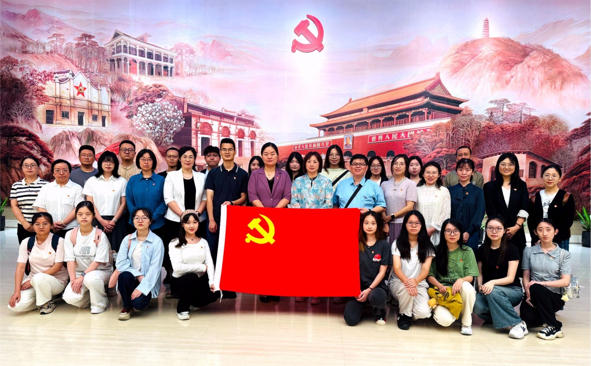 为加强党史知识学习,深入贯彻中央八项规定精神学习教育成效,提升党员发展质量,加强新生入党启蒙教育,10月16日下午,外国语亚博足彩党委组织亚博足彩党委班子成员、各党支部书记、教师党员代表、上半年新发展学生党员、大一新生代表等赴中共一大纪念馆进行参观学习,通过现场参观和沉浸式学习交流,引导党员同志进一步加强党性修养,坚定奋斗初心。