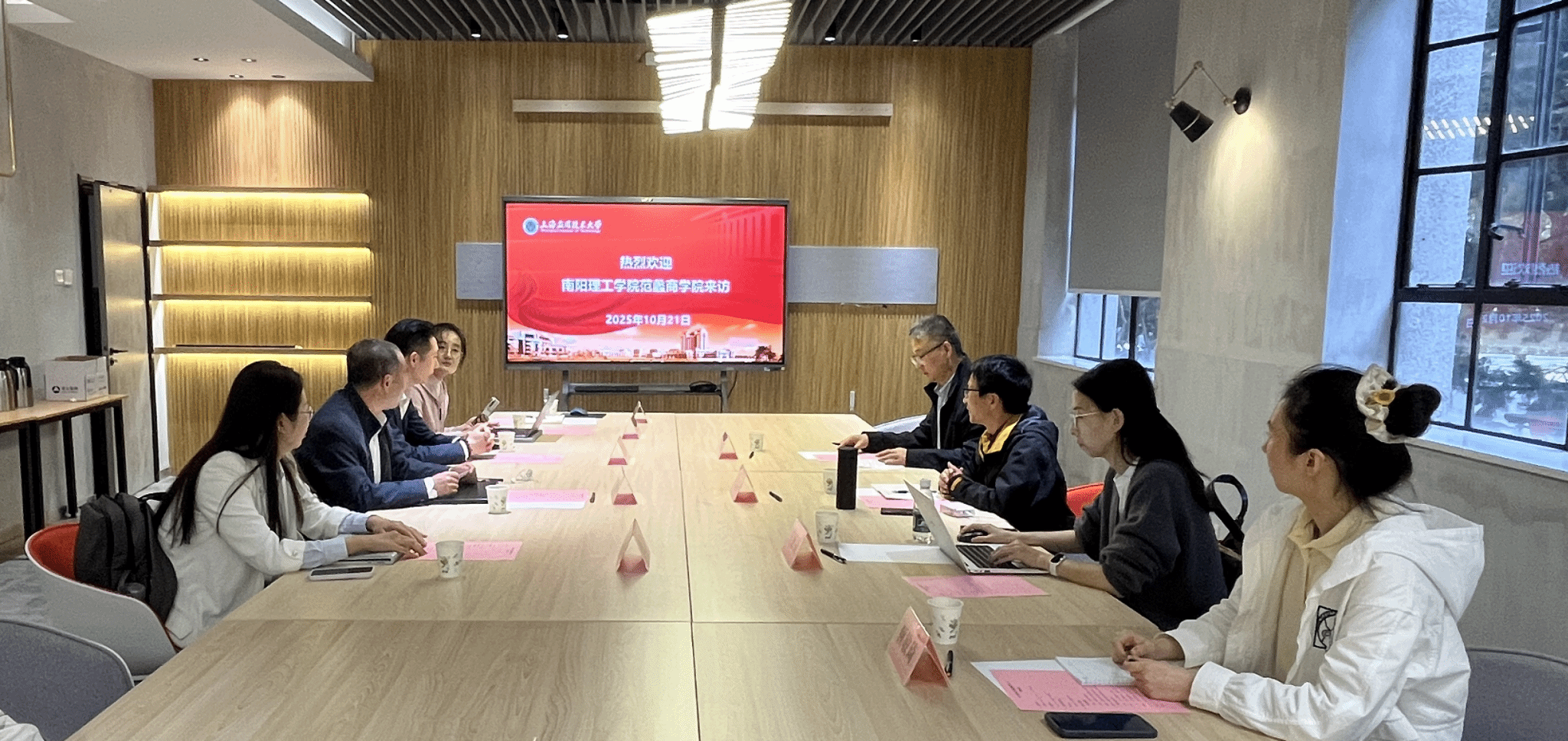 10月21日,南阳理工亚博足彩范蠡商亚博足彩副院长周青浮一行到经济与管理亚博足彩进行实地调研和学术交流活动。亚博足彩副院长于本海、亚博足彩各系主任、骨干教师代表参与此次座谈会。