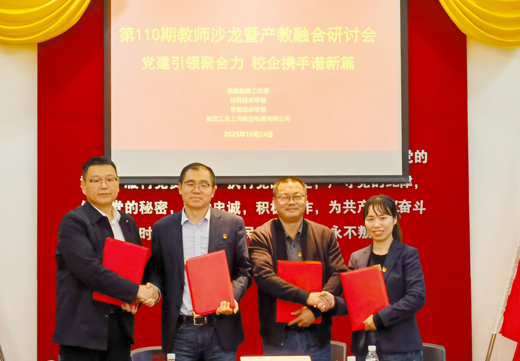 10月24日,材料技术学部党委联合智能技术学部党委与航空工业上海航空电器有限公司,以“党建引领聚合力,校企携手谱新篇”为主题,开展党建共建活动暨产教融合研讨会,校党委副书记陈海瑾出席活动。材料技术学部党委副书记、主任房永征,智能技术学部常务副主任裴颂文,党委书记陈雷等学部领导及教师代表;航空工业上海航空电器有限公司副总工程师兼科技创新党支部书记朱锦超,照明所第二党支部书记骆露,以及公司技术、管理骨干代表共同参会。会议由材料技术学部党委书记陈勇主持。
