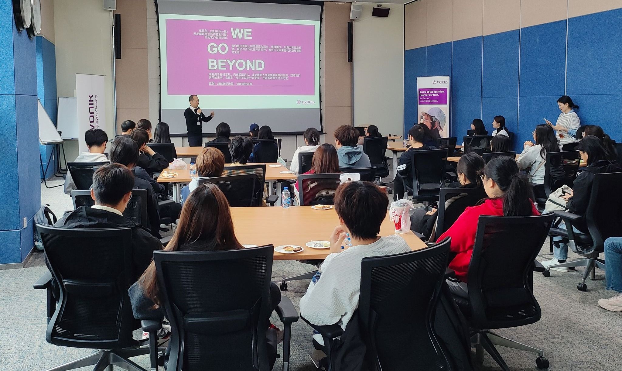 作为特种化工领域领导者,赢创在营养健康、智能材料等赛道的创新成果引发学生浓厚兴趣。赢创中国区人力资源副总裁程大年先生通过企业动态数据与案例,系统介绍赢创全球业务布局。赢创雇主品牌负责人张颖围绕企业文化、特色和管理模式等做了介绍。三位赢创工作人员结合自身工作经历介绍了化学化工人才的就业方向和前景。