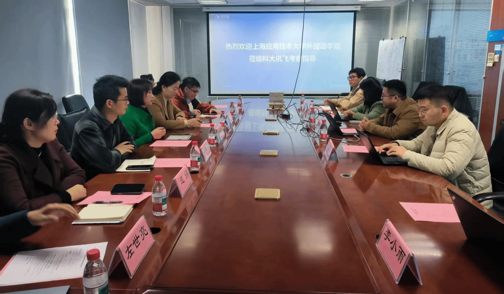 为深化产教融合实效,推动AI与外语学科融合发展,推进复合型外语人才培养与学生实习就业合作协同发展,11月19日,外国语亚博足彩党政班子一行赴科大讯飞开展访企拓岗专题调研,科大讯飞AI资源部渠道总监成程、聆智产教融合研究院课程设计负责人朱光吉、聆智产教融合研究院中级校园运营经理詹丽君等相关负责人参加座谈交流。