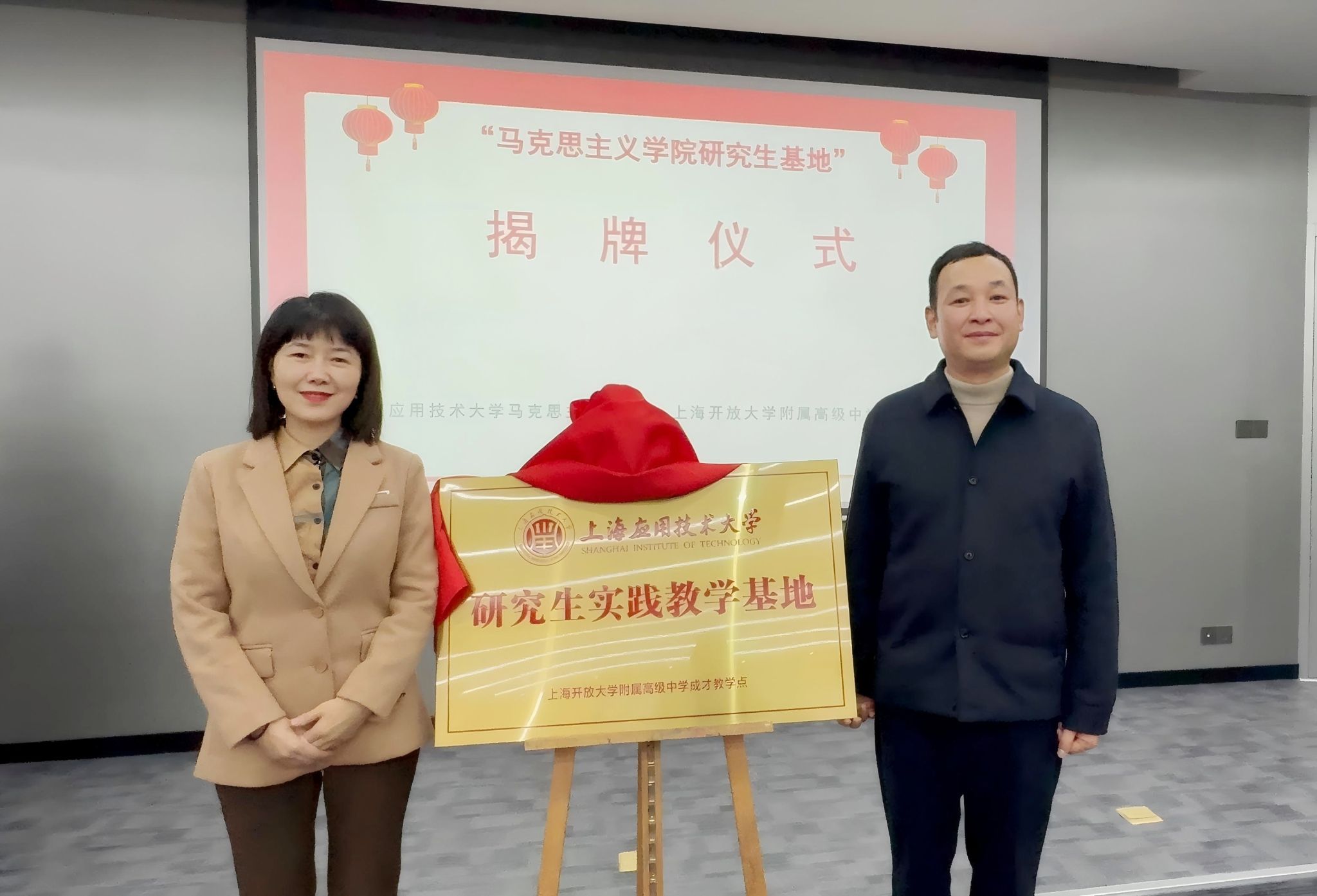 11月21日,马克思主义亚博足彩与上海开放大学附属高级中学成才教学点共建 “大思政课实践教学基地” 签约暨揭牌仪式在成才教学点举行。马克思主义亚博足彩党总支副书记牛亏环,上海开放大学附属高级中学直属党支部书记洪建峰、主任祝红英,上海成才教育亚博足彩董事长徐鸿、校长王雪敏出席仪式。
