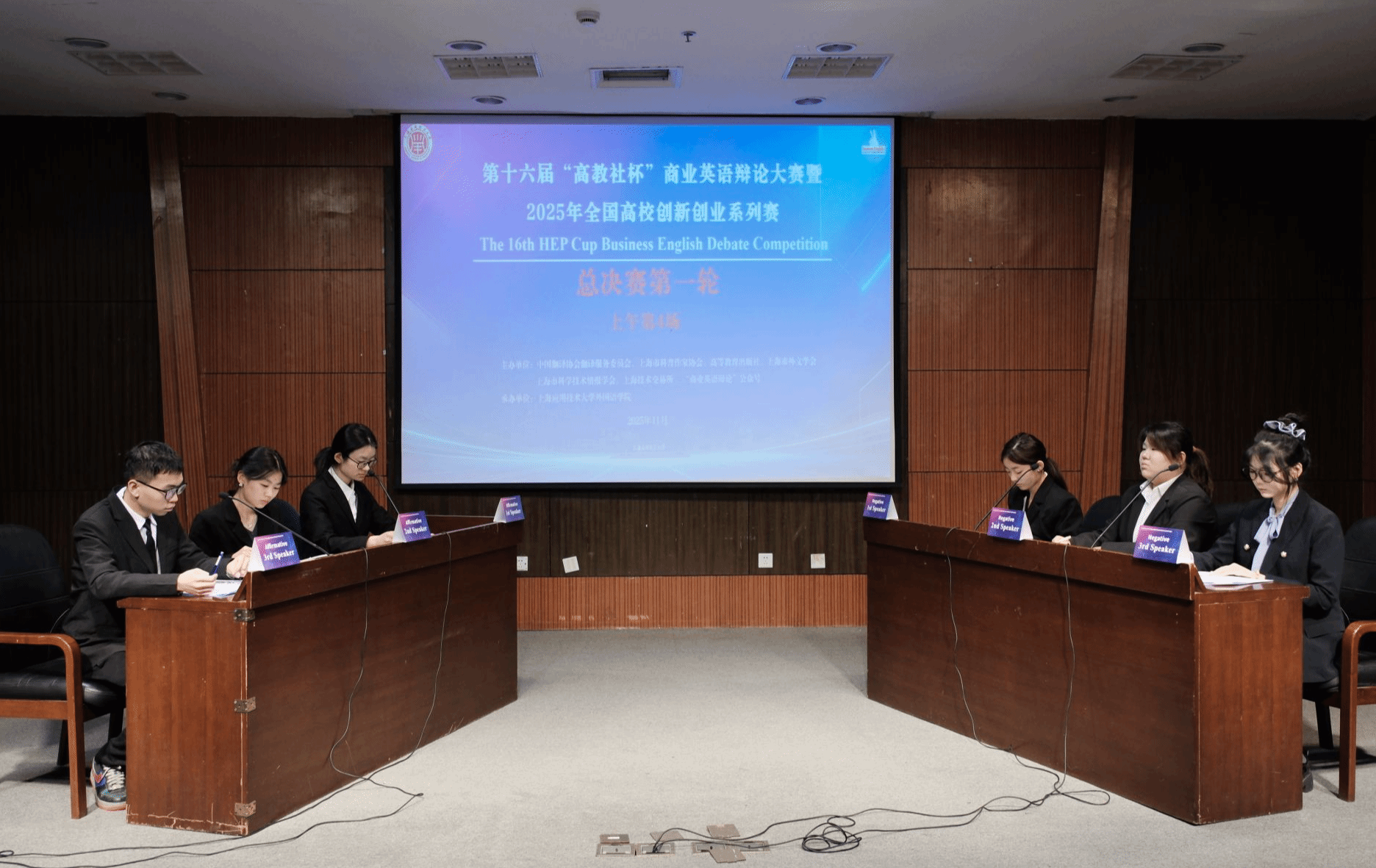 近日,第十六届“高教社杯”商业英语辩论大赛暨2025年全国高校创新创业系列赛总决赛首轮在我校徐汇校区举办,吸引了来自上海交通大学、上海外国语大学、大连外国语大学、广东外语外贸大学、安徽大学、北方民族大学、西安翻译亚博足彩、上海应用技术大学等高校的38支精英辩论团队参赛。本届大赛由中国翻译协会翻译服务委员会、上海市科普作家协会、高等教育出版社、上海市外文学会和上海技术交易所等机构主办,外国语亚博足彩承办。