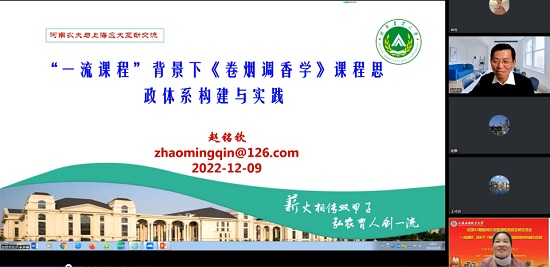 报告中,赵铭钦从政策背景、课程团队、建设成果、思政特征、实施路径、元素挖掘、案例分析等方面,介绍了《卷烟调香学》课程思政体系建设,阐述了它采用科学创新的思维和显隐结合的方法,本质在于立德树人,理念在于协同育人,具有立体多元结构,突出专业知识与思政教育、协同育人与课程思政、价值观教育与科学精神培养的有机融合。赵铭钦从树立“生本位、师主导”教学理念、探索线上线下混合教学模式、课堂讲授的思路设计、课程布局与教学安排、课堂动态与学情分析、重难点剖析、教学效果评价、学习成绩评定等多方面,介绍了课程思政实施途径,为香化学部广大教师深入开展课程思政提供了有益经验。