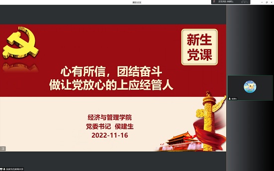 11月16日,经管亚博足彩党委书记侯建生为2022级新生讲授题为“心有所信,团结奋斗,做让党放心的上应经管人”学习党的二十大精神专题党课,并开展入党启蒙教育活动。