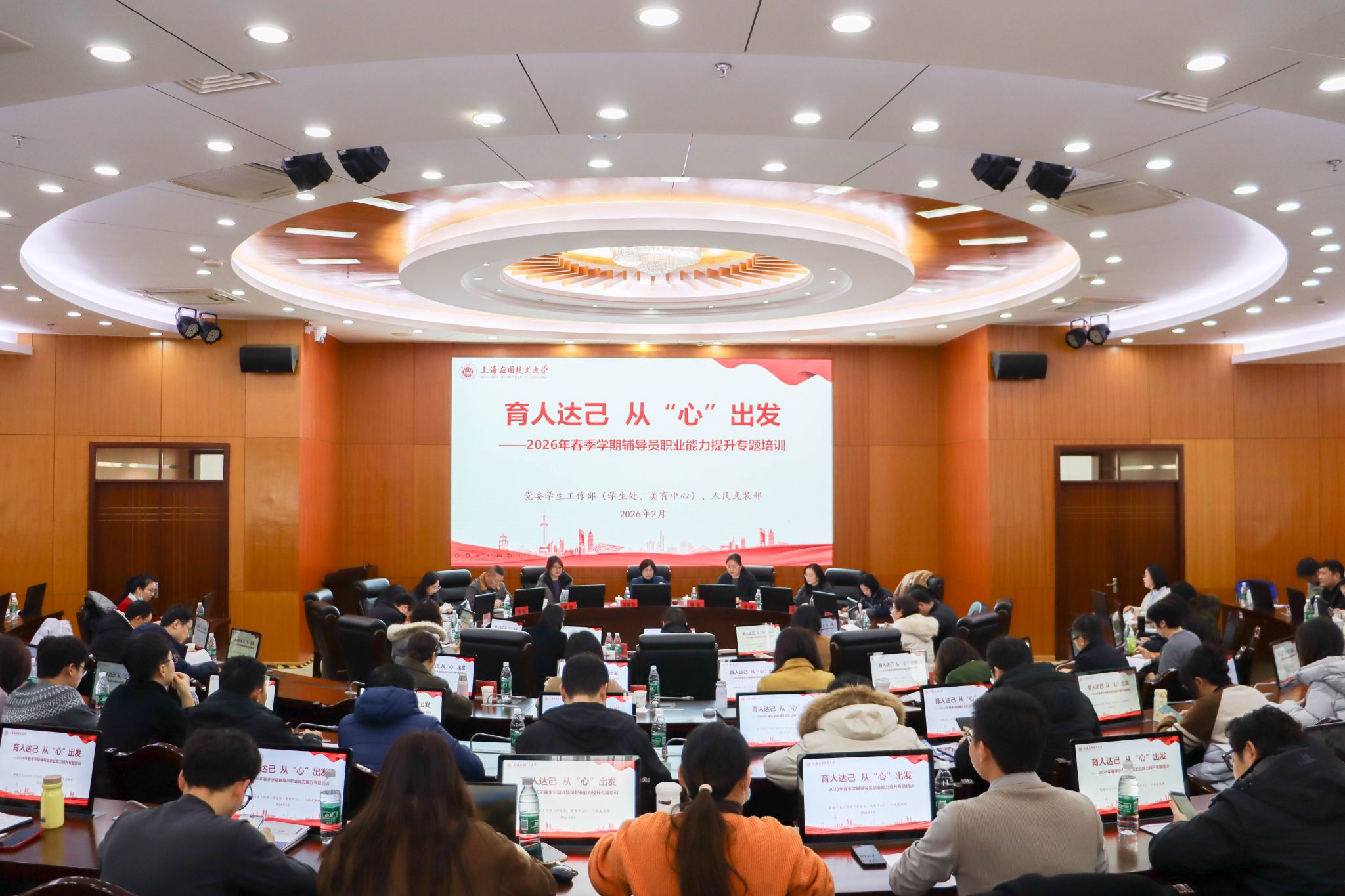2月26日,党委学工部举行2026年春季学期辅导员职业能力提升专题培训。本次培训以“育人达己 从'心'出发”为主题,紧扣时代需求与辅导员实际,融合教育家精神的理念与实践、心理健康指导与实务等内容开展。校党委学生工作部(学生处、美育中心)、人民武装部、校团委全体人员,各学部(院)分管学生工作副书记、全体专兼职辅导员参加培训,共同学习、提升育人能力,为新学期学生工作蓄力赋能。培训由党委学生工作部、人民武装部部长杨雪主持。