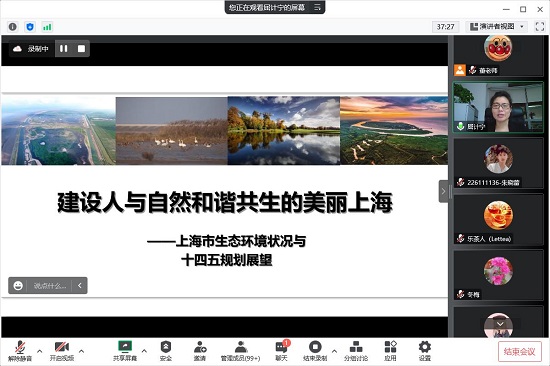 屈计宁以“建设人与自然和谐共生的美丽上海—上海生态环境状况与十四五规划展望”为题,从上海生态环境特征与演变、“十三五”生态环境工作回顾与“十四五”展望、“十四五”生态环境目标与关键举措等方面系统解读了建设生态美丽上海方面的总体目标和行动方案。她表示,近十年来上海环境质量总体上改善明显,市民在生态环境方面的获得感和幸福感显著提升。与美国纽约、日本东京、法国巴黎等世界知名城市相比较,上海生态格局仍存在优化改进空间,城市生态功能仍需持续改善提高。她分析了全市“十四五”生态环境保护面临的总体形势、存在的主要问题与压力,详细介绍了上海全市生态环境保护的指导思想、原则、总体目标、主要指标、关键举措和行动方案等内容。
