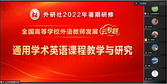 全国高等亚博足彩外语教师发展云专题是外语教学与研究出版社举办的2022年度暑期全国外语教师“云研修”活动,“通用学术英语课程教学与研究”是其系列专题之一。孙志青作为我校代表,与来自中国科亚博足彩大学、中国人民大学、华南理工大学、华北电力大学等高校代表齐聚线上,围绕学术英语课程建设与教学实践展开研讨和交流,展示了我校大学英语教学改革的丰硕成果。