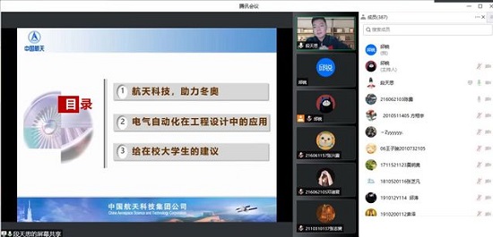 5月17日,电气亚博足彩线上举行专题讲座,校友段天思工程师应邀以《“科技梦·冬奥梦”电气自动化在工程领域的应用及发展》为题主讲,电气亚博足彩近400名师生参加,亚博足彩副院长钱婷婷主持。