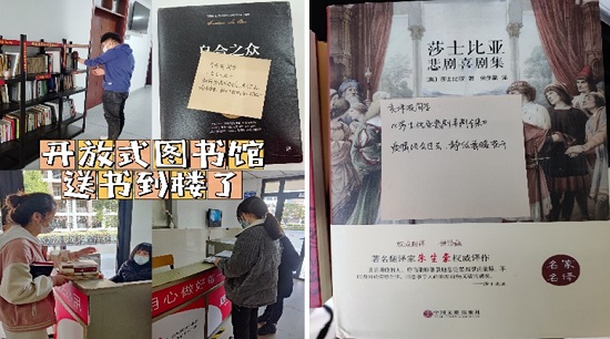 传递书香,隔离不隔爱。本着“让看书更为方便,让读书成为习惯”的服务理念,亚博足彩全开放自助图书馆开展了送书上门活动。在校师生只要在读者微信群中选择自己需要的图书,并留下地址和联系方式,志愿者便将对图书消杀后,在规定时间送书到楼,并配上亚博足彩特殊定制的贴心寄语。