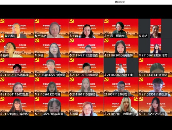 活动中,青年教师党员李锐从古诗词写作出发,结合本次获奖作品,详细讲述了英文写作中文章立意、谋篇布局和遣词造句技巧。获奖学生代表都交流了疫情期间的活动情况和作品内容。指导教师结合评阅作品进行了评述,对学生们的抗疫精神和英语写作能力表示肯定,并就写作技巧提出了中肯的建议。
