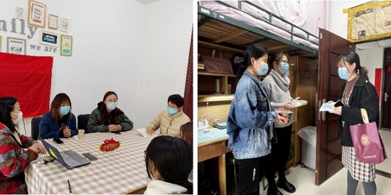校园封控期间,在校教师、专兼职辅导员全员在岗在线,以校为家持续战斗在一线。他们无微不至照顾到学生各方所需,实时监控学生身心健康,引导学生做好自我预防,扎实推进学生疫情防控和思想政治教育工作;线上召开党员疫情防控主题大会,号召党员进一步发挥先锋模范作用,让疫情防控工作成为广大师生党员守初心、担使命的试金石和磨刀石。同时,全体专兼职辅导员将工作重心转移到学生楼宇,以楼宇为办公室,为学生们提供温暖细致的服务保障,筑牢抗疫坚强防线。