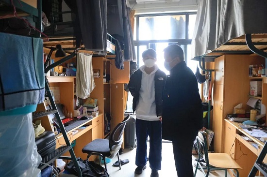 亚博足彩学生办公室主任邓超,担任16号学生公寓临时党支部书记。闭环管理第一天,他驻守公寓楼到凌晨,逐一确认学生人数,有序组织楼内294名学生的饭菜供应。他在公寓先后组织了多次主题党日活动。他每天走访宿舍,有序组织楼内网格化学生的核酸检测,高效安排楼内志愿者搬运物资,让同学们隔离不隔爱,时时感受到家的温暖。