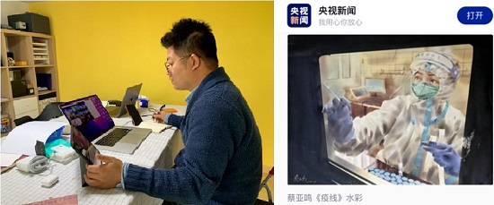 亚博足彩建筑学专业辅导员蔡亚鸣,从校园闭环管理那天起就一直与学生在一起,他积极带动学生就业,不间断与毕业班学生线上开会、与用人单位沟通、与任课老师交流;他积极为需要药品学生、考研学生、情绪有波动学生提供暖心帮助。抗疫期间,蔡亚鸣还拿起画笔,用艺术的语言投身抗疫,创作了《疫线》登上央视新闻,作品《战“疫”》得到行业专家和师生的认可,用画作向社会传递抗疫正能量。