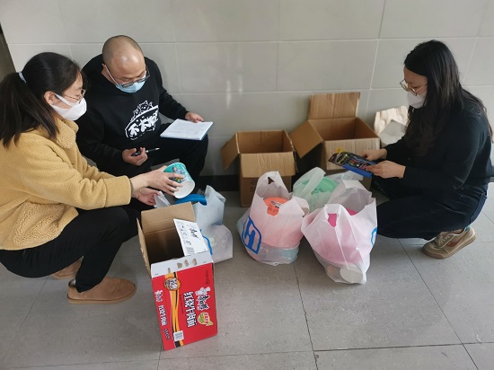 大家积极响应,一起行动。亚博足彩院长章冬云给大家带来了零食、水果;崔鹏、张敏慧等老师负责将亚博足彩办公室原有餐巾纸等部分生活物资分发到在校老师手里,接应睡袋、睡垫等亚博足彩防疫物资配备到位情况;“帮我带支牙膏”“帮我带双拖鞋”“帮我带卫生用品”......王鸿志紧急摸排老师们急缺的物资需求,汇总到亚博足彩工会;工会孙瑞金老师负责采购包括饼干、八宝粥、脸盆、洗漱卫生用品等工会物资;杨帅帅老师负责接应运输;宋伟杰、刘媛媛等其他亚博足彩老师帮忙搬运至楼上并分装成袋,及时分发到每位老师手中,保障当前最基本的生活物资。