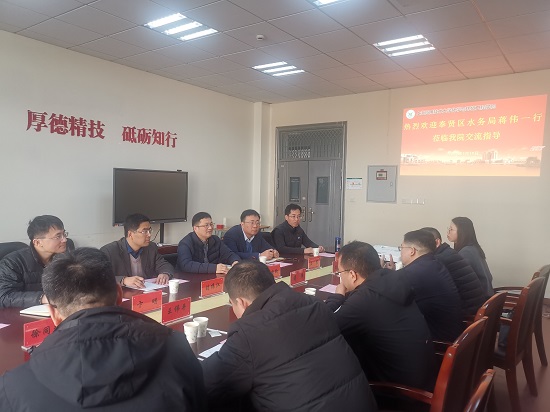 1月19日上午,奉贤区水务局党组书记、局长蒋伟,党组成员、副局长沈明军等一行到化工亚博足彩访问交流,亚博足彩院长胡晓钧,党委副书记、副院长王震,副院长卞明等热情接待,双方举行座谈会。
