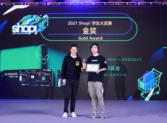 近日,由Shop!大中华国际零售营销广告协会举办,面向大学生的零售、营销、展示和广告领域的国际性学生赛事“2021Shop!”落幕。在我校艺术亚博足彩视觉传达系教师丁斌、张曦指导下,艺术亚博足彩学生郭辰龙的作品《ALIENESRE GAMER CLUB专卖店设计》夺得大赛金奖,并受邀参加在广州举办的颁奖典礼,由广州4A协会会长钟坚颁奖。