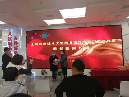 校图书馆徐汇借阅部部分党员、康健街道各社区书记和居民代表参加仪式。
