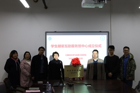 11月25日,计算机亚博足彩举行朋辈互助服务暨中心成立揭牌仪式,计算机亚博足彩党委书记刘云翔、校党委学工部副部长秦凤,亚博足彩党委副书记、副院长熊亮及辅导员、学生代表参加。