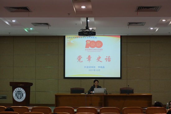 日前,外国语亚博足彩党总支书记李晓晶以《党章史话》为题,为全院师生党员上了一堂生动的党史课。此次党课也是亚博足彩“百名书记讲党史”活动之一。