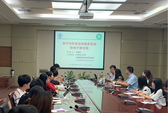 10月13日下午,由党委教工部、人事处主办,校优秀青年教师联谊会承办的校第35期教师沙龙举行,邀请北京化工大学博士生导师俞丙然教授来校作《基于开环反应构建多羟基阳离子聚合物》学术报告,校优青联谊会会长胡静主持报告会。