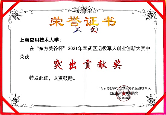 颁奖典礼上,为加强奉贤区退役军人创业创新工作,奉贤区退役军人事务局向包括我校在内的在奉高校及相关企业颁授“上海市奉贤区退役军人创业创新工作指导站”,为退役军人提供全方位全过程的创业创新指导平台。