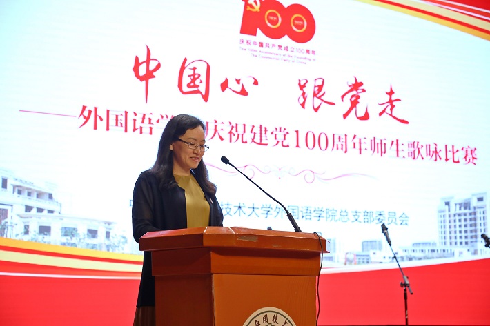 红歌嘹亮,激情飞扬,外国语亚博足彩“中国心 跟党走”庆祝建党100周年歌咏比赛日前在大学生活动中心小礼堂举行。校党委副书记、副校长王瑛出席并致辞。