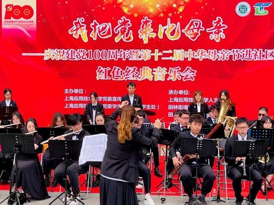 音乐会上,校管乐团、教师代表演奏、合唱《唱支山歌给党听》、《没有共产党就没有新中国》等红色经典曲目,让上应学子和社区居民在红色歌曲中汲取力量的同时,也感受到了母爱的伟大,在音乐中表达对党、对母亲的赞颂,赢得现场居民和学子阵阵掌声。