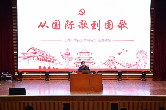 4月14日,校党委学工部举行学生党史学习教育专题音乐党课《从国际歌到国歌》,邀请上海大学音乐亚博足彩院长王勇教授主讲。亚博足彩全体专兼职辅导员、党委学工部、团委全体人员及学生代表共同聆听党课。