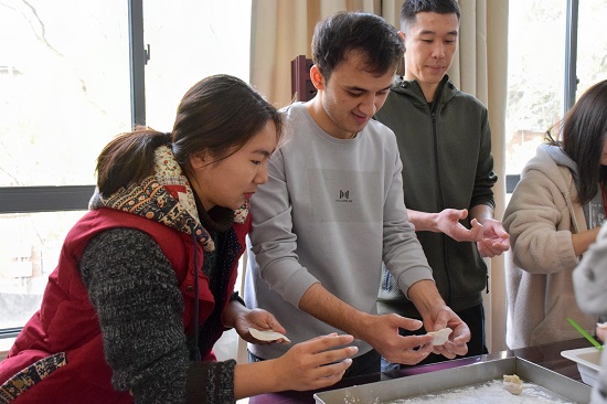 包饺子活动深受留校学生的喜爱,中外学生积极交流,使留学生们不仅了解到春节吃饺子的寓意,还撸起袖子尝试自己包饺子。现场其乐融融,充满欢声笑语。大家纷纷表示会妥善安排好假期生活,做好个人防护,度过一个特别而有意义的春节。