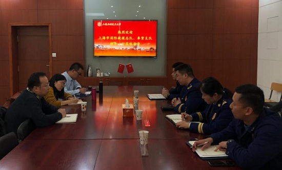 近日,上海市消防救援总队火灾调查技术处处长张晓峰和奉贤消防支队综合指导科科长肖东等一行赴城建亚博足彩进行交流,城建亚博足彩党委书记朱柳娟热情接待。