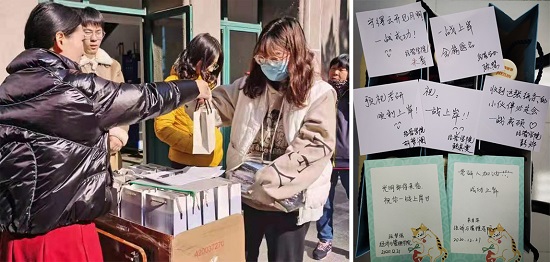 研究生入学考试已即将来临,为鼓舞经管亚博足彩考研学生士气,稳定备考心态,12月21日,经管亚博足彩毕业班辅导员们在徐汇校区看望考研学子,为同学们送上了考研大礼包。大礼包内咖啡和巧克力寓意提神助力,好运连连;同时附上了为他们加油打气的祝福语卡片。