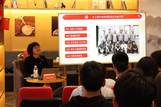讲座中,李丹萍结合“四史”学习教育,详细介绍了党的发展与奋斗历史。她围绕中国共产党为什么诞生于上海,指出了上海的四个特点:全球化视野下的全方位开放、文化宽容、多元文化格局的海派文化特点、勇于创新,敢为人先。她讨论了当下大学生要学习党史、新中国史的原因,表示“以铜为镜,可以正衣冠;以史为镜,可以知兴替”。她详细介绍了党史、新中国史、社会主义发展史、改革开放史,使在场同学们更深入了解了中国的发展历程。