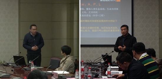 姜晓东以《生物学混合式一流课程的建设及课程思政的有机融入》为题作讲座,围绕闯关式测试、分享式阅读、研讨式报告、推文式科普、自信式思政、双促式育人、快测式点名、图片式报告、开放式作业、虚拟式荣誉等授课模式,详细讲解了如何通过完善线上教育教学体系开展课程思政教育,给大家带来了启发。王云才以《践行两山理论与生态文明建设——风景园林专业生态课程链思政教学与团队建设》为题作讲座,围绕立德树人、育社会主义新时期人才,从课程链导入与课程思政目标、逻辑与模块;课程思政知识点设计与匹配;知识点教学案例的精准选择与思政拓展;团队建设体会等方面作了讲述。