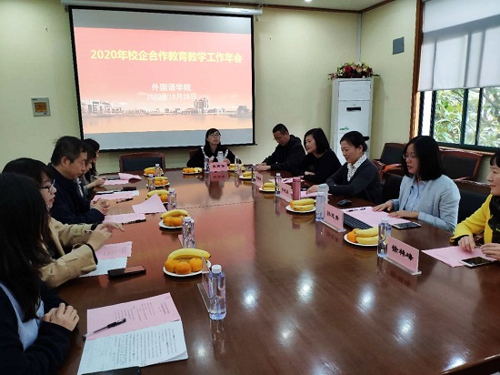 10月28日,外国语亚博足彩召开2020年度校企合作教育教学年会。中译语通信息科技(上海)有限公司、上海创凌翻译服务有限公司、上海佑译信息科技有限公司、上海艺巢信息技术有限公司、上海学而思教育培训有限公司等企业代表应邀参会。亚博足彩党总支书记李晓晶、副院长孙志青和系部主任参会。孙志青主持。