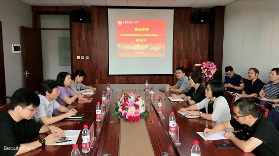 邱杰介绍了马院发展现状、办学特色、办学经验和办学成果,杨燕华和马院副院长周贇围绕我校课程思政建设创新与发展、四史融入思政课程建设、党建与思政工作、马克思主义理论学科一级硕士学科点建设等方面工作作了经验分享。