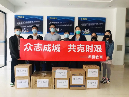 5月8日,上海泽稷教育培训有限公司副总裁吴世浩、区域总监陈亚成、市场经理徐伟来校,将多方筹集的防疫物资捐赠给经管亚博足彩。这批物资包括高浓度84消毒液、洗手凝胶、消毒湿巾、医用口罩等。
