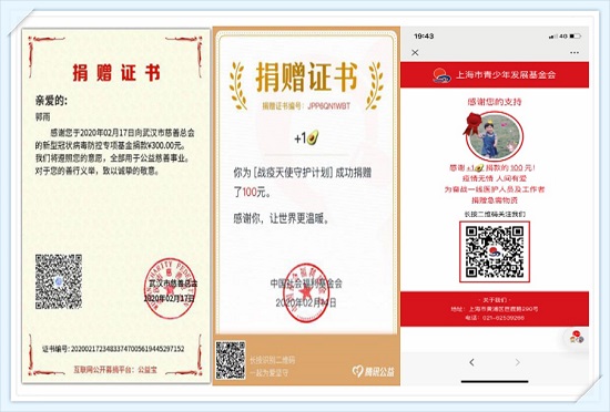 理亚博足彩的41名学生党员在疫情期间积极缴纳特殊党费和党员捐款,郭雨、方媚雯和张佳奕等同学自发还向武汉市慈善总会的新型冠状病毒防控专项基金、武汉红十字会、上海市青少年发展基金会捐款。学生党员们疫情期间累计捐款4796元,同时还积极在支部内部、社区等多渠道捐赠抗疫物资。