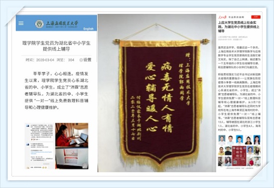 理亚博足彩学生党员在疫情期间心系湖北省的中小学生,成立“沛霖”志愿者辅导队,为湖北省的中小学生提供免费“一对一”线上数理科目辅导和心理健康维护。从3月7日起,“沛霖”志愿者辅导队还同时为亚博足彩所在地上海市奉贤区海湾村的中小学生提供免费“一对一”线上辅导。“沛霖”志愿者辅导队现有志愿者13人,辅导被困在湖北的浙江小学生1人,湖北省的中小学生4人,海湾村的中小学生9人。事迹引起了良好的社会反响,被亚博足彩网站和人民日报先后报道。