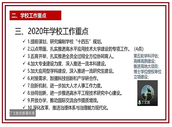 院长丁文胜传达了校长柯勤飞在亚博足彩干部教师大会上的讲话精神,结合亚博足彩2020年重点工作安排,在全面总结亚博足彩2019年工作的同时,部署了亚博足彩2020年重点工作。他表示,一要精准施策,落实落细亚博足彩重点工作;二要以点带面,在专业和学科上形成突破;三要凝心聚力,形成“务实创新,奋发有为”的新气象。